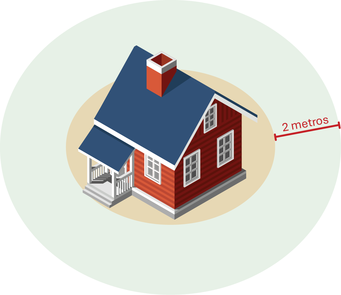 - Deverá haver uma distância mínima de 2 metros entre copas